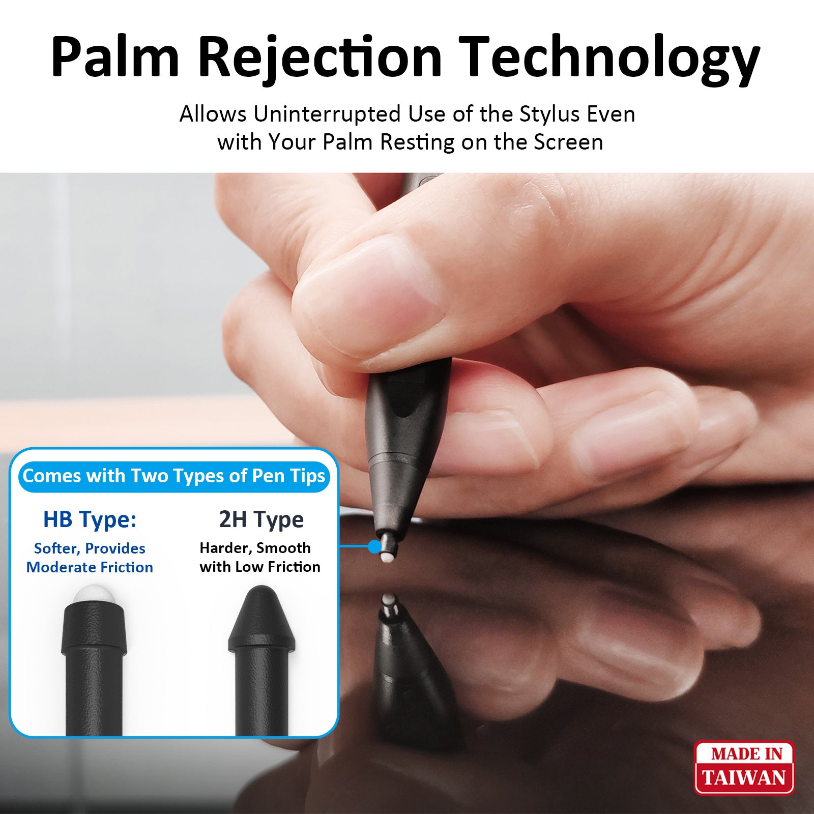 - 【Palm Rejection Function & Ergonomic Design】Palm rejection capability allows you to rest your hand comfortably on the screen without interfering the stylus use. With a 9.2 mm diameter, a streamlined design, and weighing only 14 grams, this stylus is easy to use for extended periods of time. Made of premium aluminum alloy, make the pen lightweight and durable.