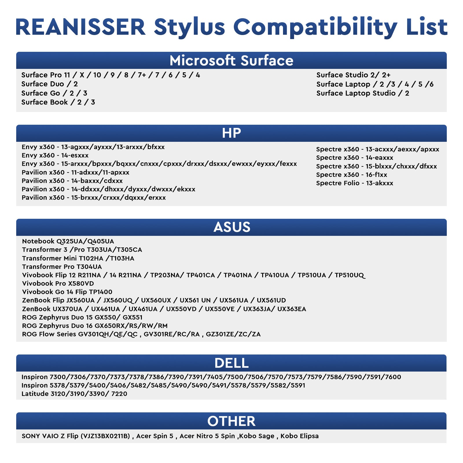 - Compatible with the following models: Surface Pro 11th Edition, Surface Pro 10, Surface Pro 9, Surface Pro 8, Surface Pro 7+, Surface Pro 7, Surface Pro 6, Surface Pro 5, Surface Pro 4, Surface Duo/Duo 2, Surface Pro X, Surface Go/Go 2/Go 3, Surface Book/Book 2/Book 3, Surface Studio 1st Gen, Surface Studio 2, Surface Studio 2+, Surface Laptop 1/Laptop 2/Laptop 3/Laptop 4/Laptop 5/Laptop 6, and Surface Laptop Studio.Please note that the Surface Laptop Go and Surface Laptop Go 2 are not compatible with this stylus.