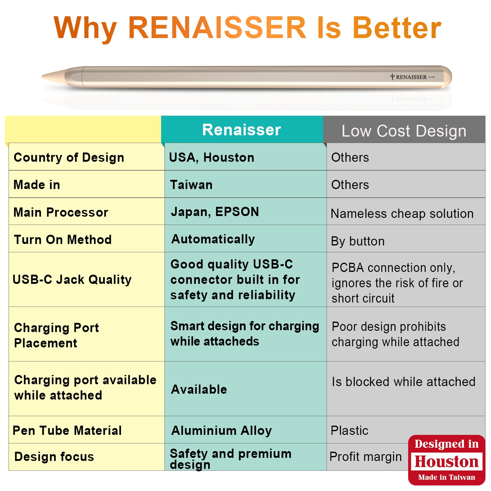 - Rock Solid Quality - We care about all the details. RENAISSER Turing 520 was designed in Houston, Texas, it uses a Japanese EPSON processor chip and is made in Taiwan. Built with a Premium quality USB-C connector for safety and reliability. Others use PCBA as the connector, which has a high risk of fire and short circuiting.