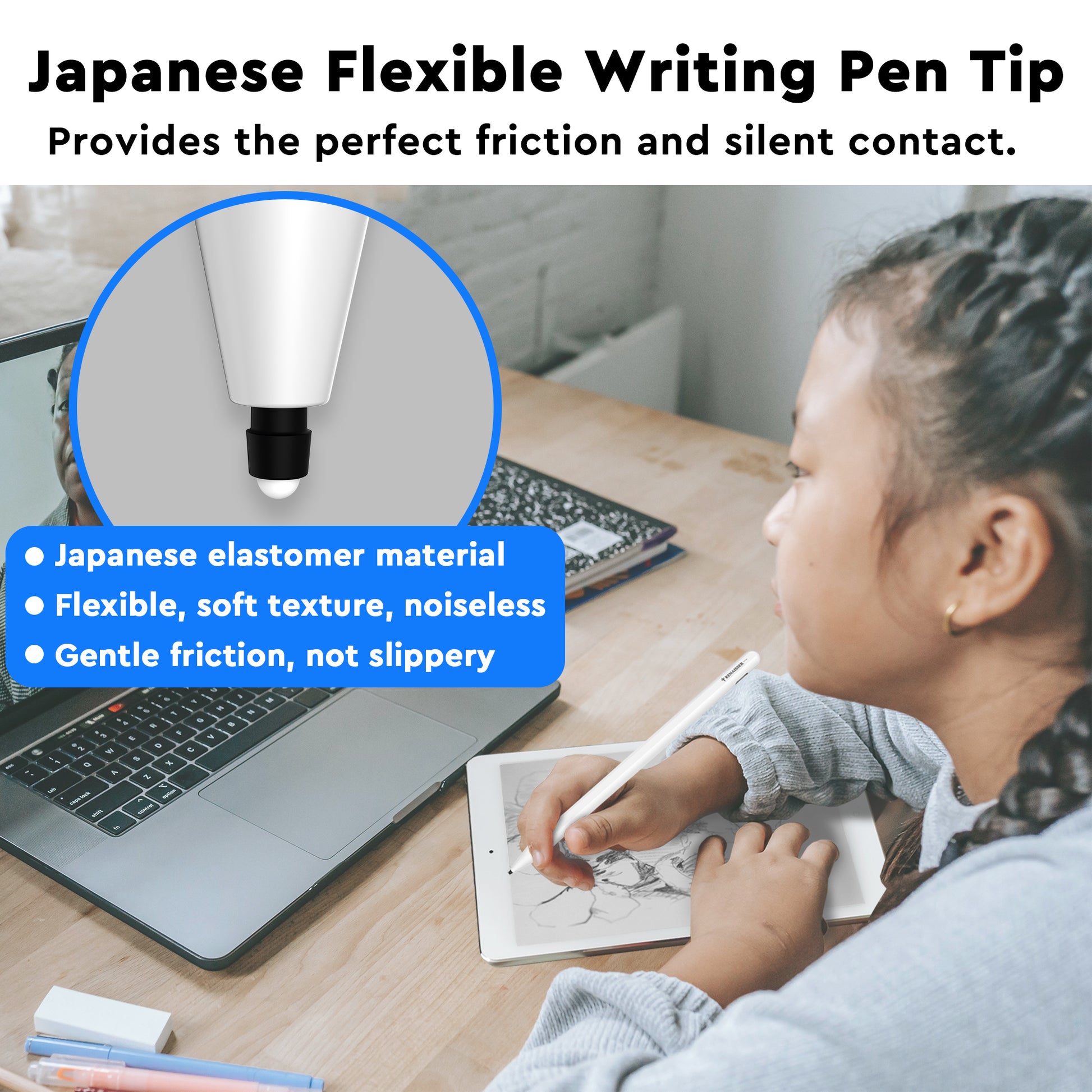 - Special design for writing and note-taking. Uses a paper-feel Japanese elastomer pen tip, which provides gentle friction when writing, just like use pencil writing on the paper. Unlike other plastic pen nib which will be slippery when using on the screen.