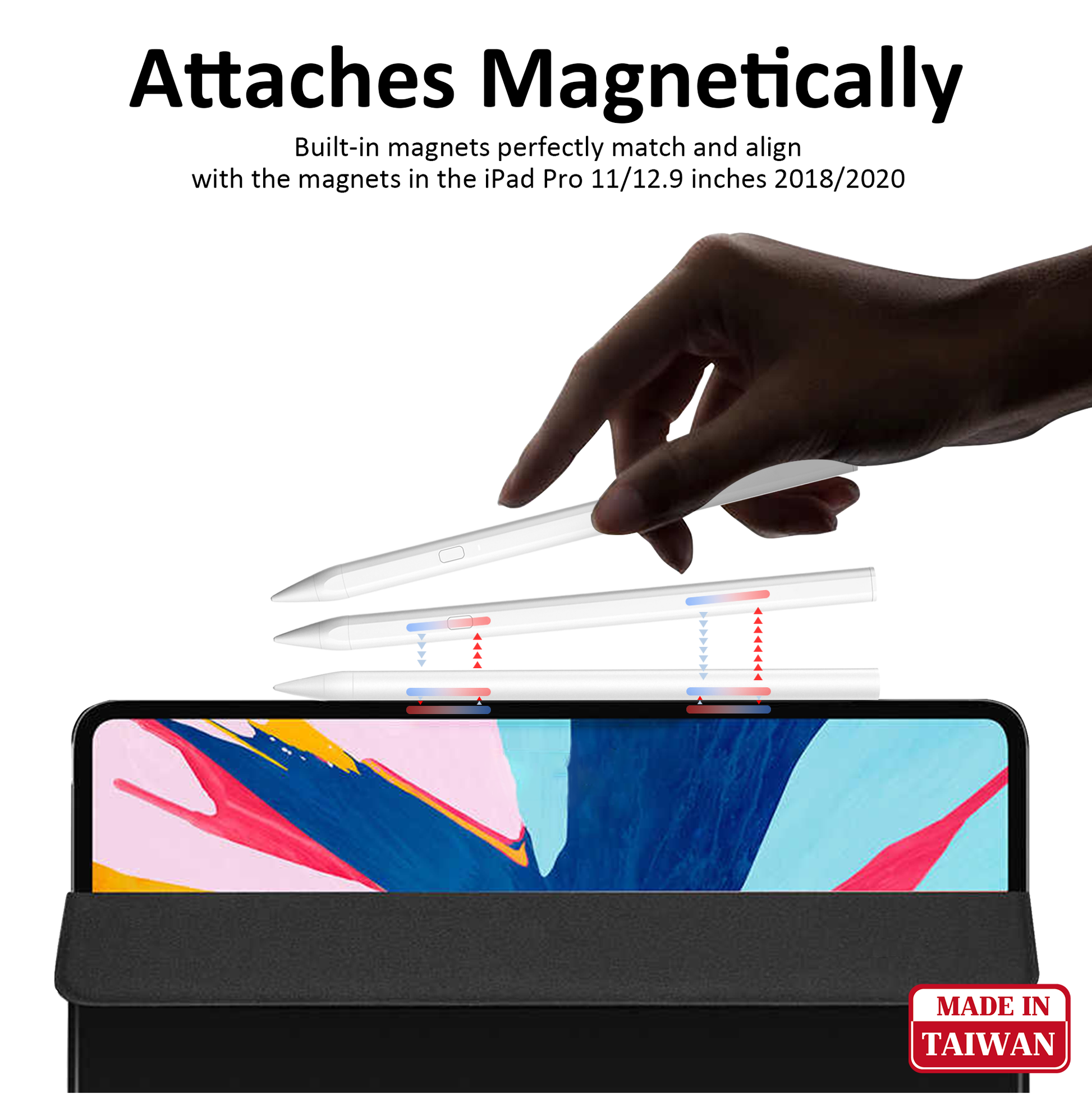 - Attaches magnetically- Built-in magnets perfectly match and align with the magnets in the iPad Pro 11/12.9 inches 2018/2020. Easily attach the pen onto the side of the iPad Pro. It attaches firmly for immediate access and to prevent loss of the stylus.