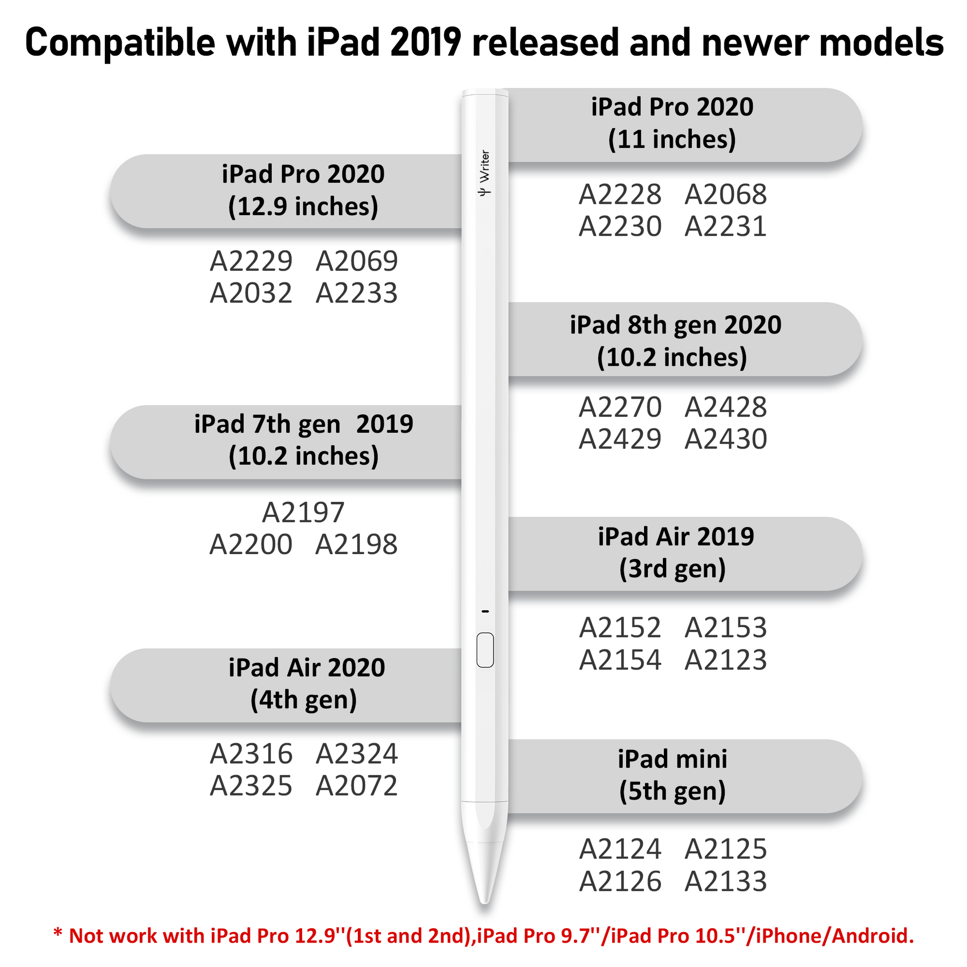 - Especially Designed for the iPad Series- The pencil for iPad is compatible with Apple iPad 2019 & 2020: iPad 8th Gen(10.2"), iPad 7th Gen(10.2"), iPad Mini 5th Gen, iPad Air 3rd Gen, iPad Air 4th Gen, iPad Pro(11"/12.9")2018/2020. Please confirm the compatibility of your device before you place an order, all other models are incompatible.